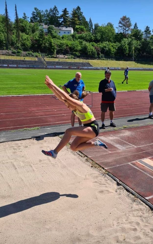 She also took part in a discus competition for the first time. Her 15.66 meters earned her the silver medal in Villmar. With her long jump season best of 3.90 meters, she jumped onto the podium and grabbed the complete set of medals with bronze.