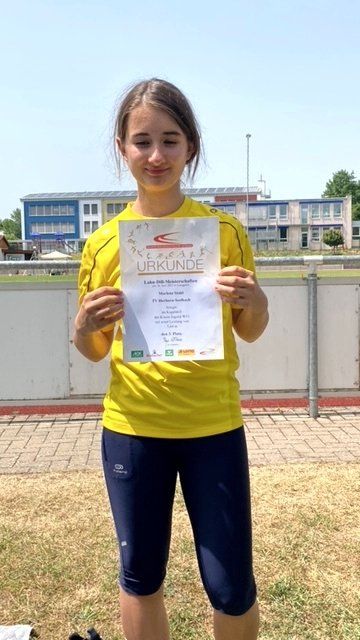 At the regional individual championships in Wetzlar with a large, strong field of participants, Leonie Marie Hönig won bronze in the W14 age group in the shot put with 6.60 m and in the discus throw with 19.56 m.