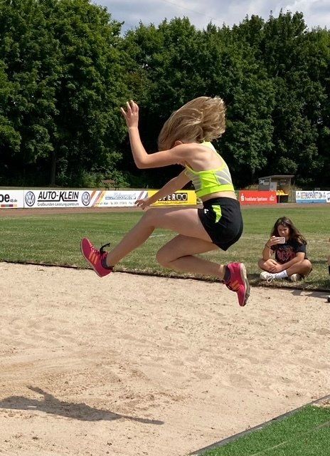 Her sister Linette Rauchhaus took third place in the W12 with 1.10 meters in the high jump. In the long jump she achieved fifth place with 3.67 meters. A great result, as it was her first competition where she had to hit the "board" and was not allowed to jump out of the zone.